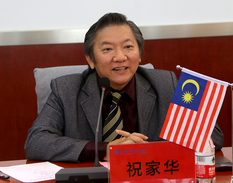 座谈会上,学校党委副书记、副校长张清华对马来西亚南方大学学院祝家华校长一行的到访表示热烈欢迎,并简要介绍了学校的建校历史和办学成就,回顾了学校与马来西亚南方大学学院的交流与合作历程,对前期双方开展的合作成果给予肯定。他说,中国的“一带一路”建设,为对外合作交流带来了新的机遇,希望两校能够在原来基础上开展更多实质性的交流与合作,促进双方共赢发展。