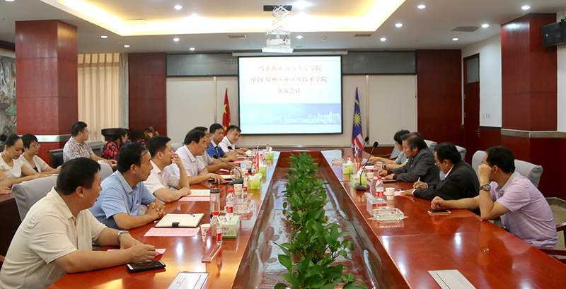 祝家华校长感谢郑州工业应用技术学院的热情接待,并对我校取得的办学成就、完善的办学设施给予了高度评价。祝家华校长简单介绍了南方大学学院的基本情况和华文华语在教育教学中的传承和发展。他说,我们有着共同的语言和文化,南方大学学院是东南亚第一所由华人举办的非营利性大学,在办学过程中得到了华人社会的大力支持和帮助。学校实行双语教学,也为双方合作交流带来了更多发展空间。他希望与郑州工业应用技术学院在对外合作交流方面可以开拓更多的项目。