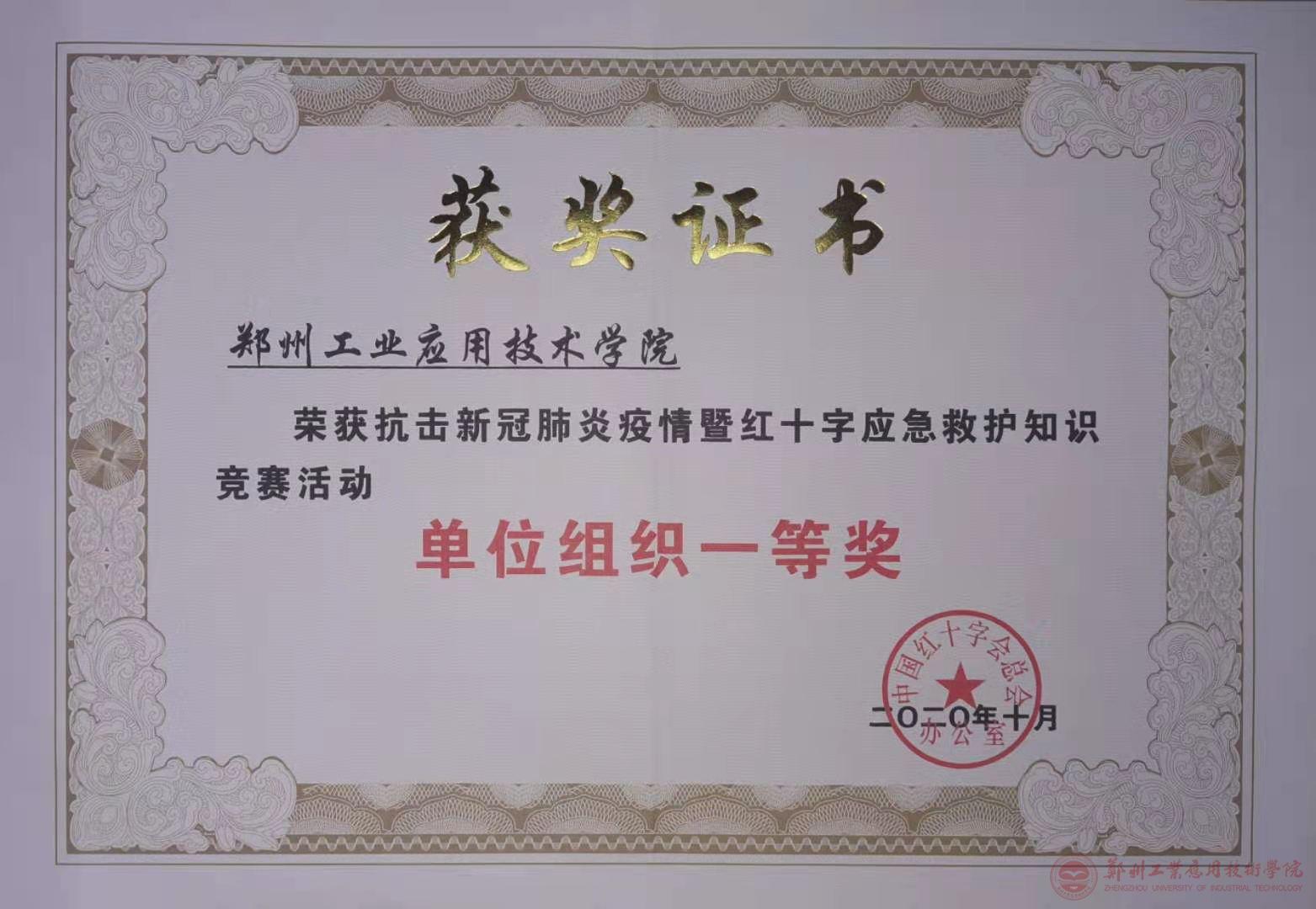近日,由中国红十字会总会主办的抗击新冠肺炎疫情暨红十字应急救护知识竞赛结果揭晓,我校喜获单位组织一等奖。