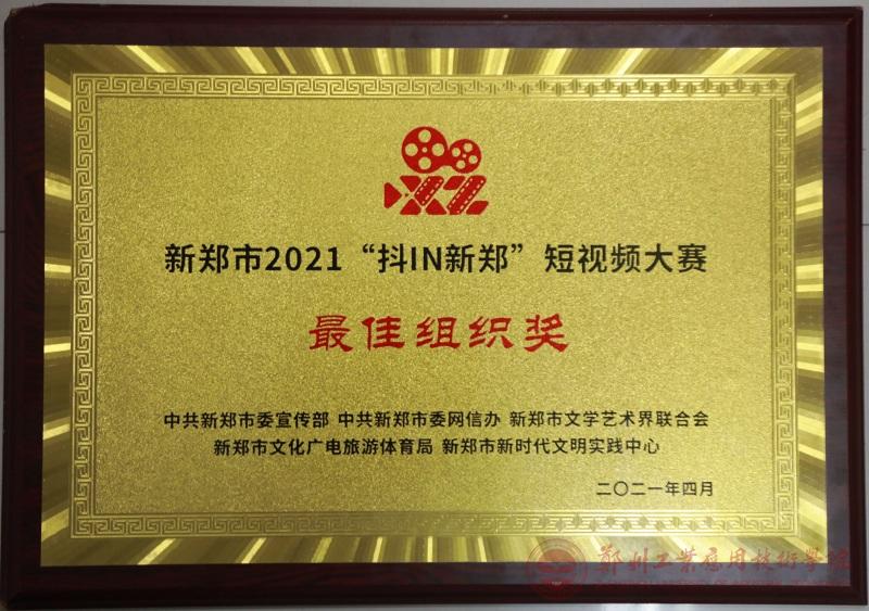 5月9日晚,由中共新郑市委宣传部、中共新郑市委网信办、新郑市文学艺术界联合会、新郑市文化广电旅游体育局、新郑市融媒体中心、新郑市新时代文明实践中心主办的2021年新郑市2021“抖IN新郑”短视频大赛颁奖典礼在炎黄广场举行。在此次大赛中,我校荣获新郑市2021“抖IN新郑”短视频大赛最佳组织奖,郑工融媒体工作室选送的作品《我和我的祖国》《在春天里与新郑相遇》《春风拂柳花开校园》《少年中国说》《弟子规》分别荣获最佳校园奖、最佳短视频奖。